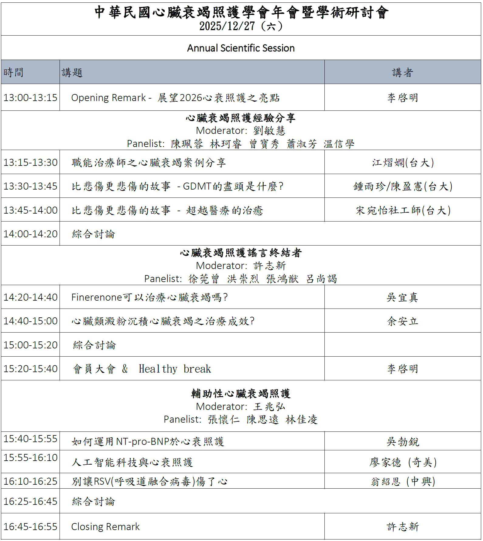 114年「中華民國心臟衰竭照護學會年會暨學術研討會」